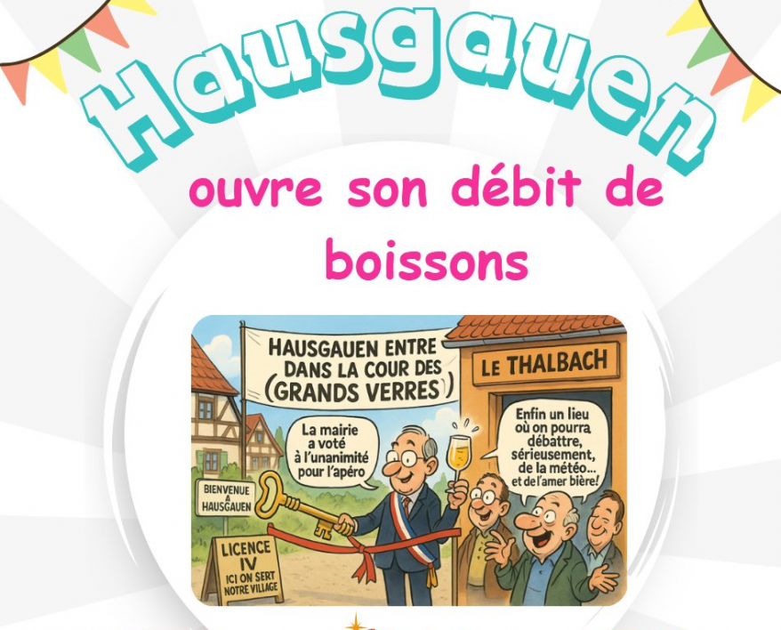Dans le cadre de la licence IV, la commune ouvrira à nouveau un bar éphémère à la salle communale "Le Thalbach" le vendredi 10 et samedi 11 octobre de 19h à 23 h.