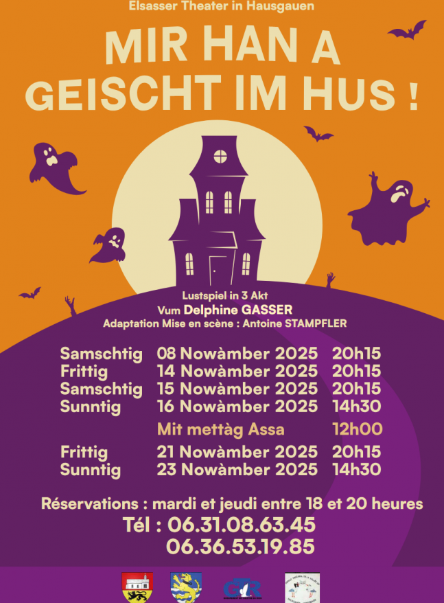 A l'affiche, une comédie en 3 actes signée Delphine Gasser dans une mise en scène d'Antoine Stampfler "Mir han a Geischt im Hus!".