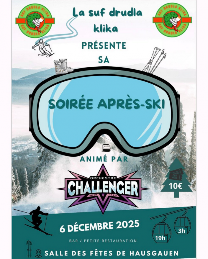 La Suf drudla klika organise sa soirée après-ski le samedi 06 décembre à la salle communale le Thalbach.