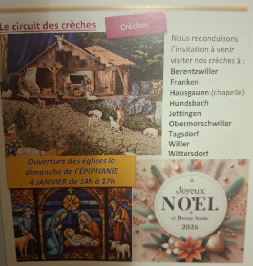 Le dimanche de l'Epiphanie ,le 4 janvier 2026, notre communauté de paroisses de la vallée de Hundsbach invite à la 2e édition du circuit des crèches. Neuf crèches seront à découvrir de 14h à 17h.