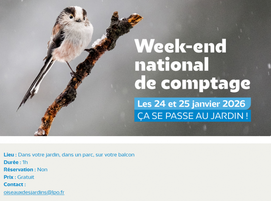 Le grand rendez-vous du Comptage National des Oiseaux des Jardins est de retour ! Les 24 et 25 janvier 2026, la LPO invite tous les curieux de nature à consacrer 1 heure à observer et compter les oiseaux de leur jardin.