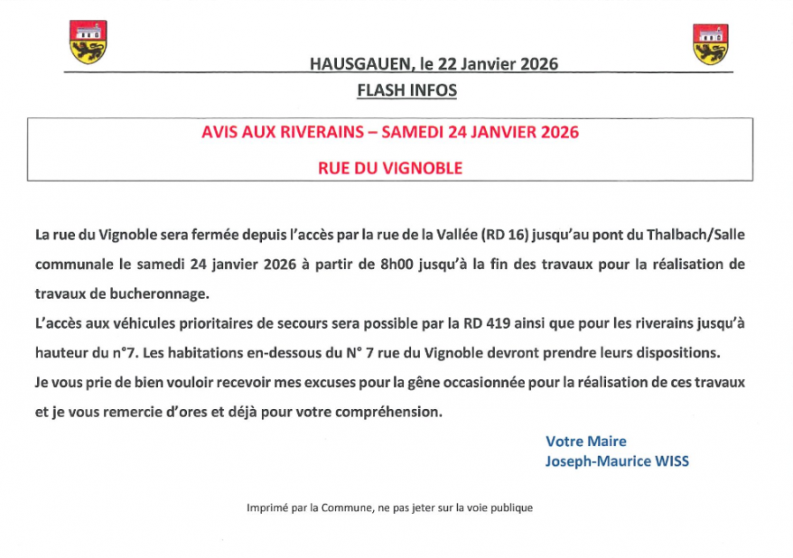 24 janvier --> rue du vignoble fermée